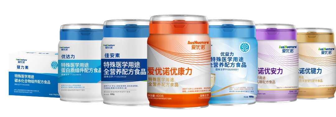 发展至今,爱优诺以全营养特医食品作为当前核心品类,持续完善产业链,丰富产品种类;目前公司拥有爱优诺优益力特殊医学用途全营养配方食品、爱优诺优康力特殊医学用途全营养配方食品、佳安素特殊医学用途全营养配方食品、爱优诺优达力特殊医学用途蛋白质组件配方食品、爱优诺优安力特殊医学用途婴儿无乳糖配方食品、爱优诺优键力特殊医学用途早产/低出生体重婴儿配方食品、爱优诺特殊医学用途碳水化合物组件配方食品共七款产品,获证数量全国领先。