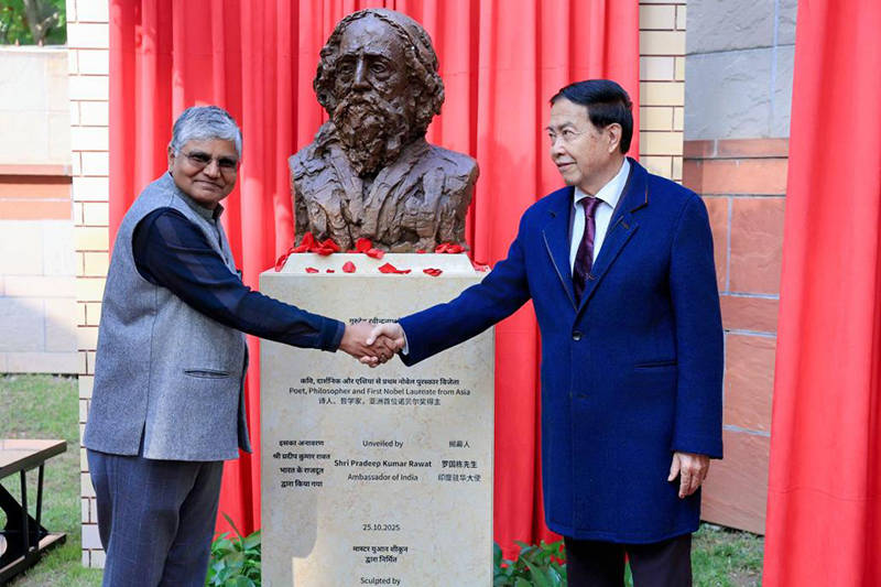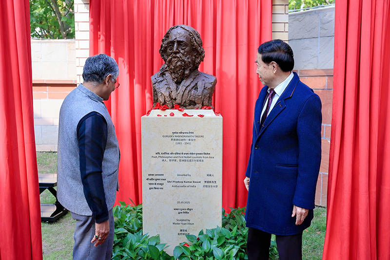 10月25日,著名艺术家袁熙坤创作的印度文学家泰戈尔雕塑落成仪式在印度驻华大使馆举行。印度驻华大使罗国栋、著名艺术家袁熙坤、中央美术学院雕塑系教授、全国城雕委主任、中国雕塑学会名誉会长曹春生、北京画院原副院长杜军山、社会各界嘉宾共同出席活动,见证这一中印文化交流的重要时刻。
