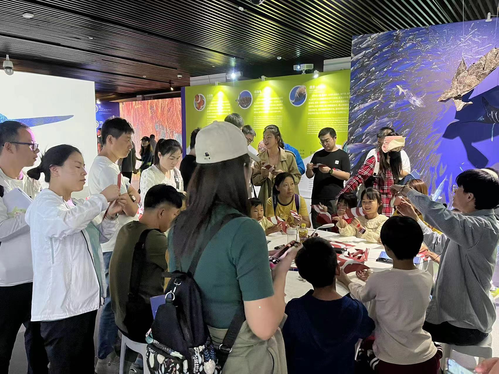 游客们在国家海洋博物馆观展后参加折纸互动活动。(受访者供图)