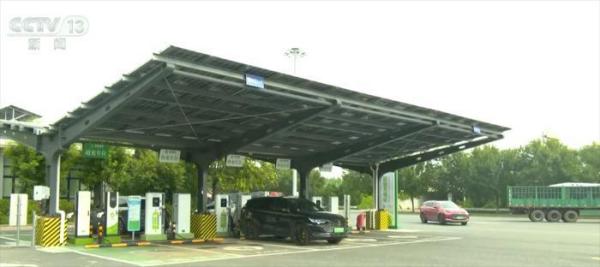 在北京西南方向京昆高速上的一个服务区,记者看到这里专门为电动车开辟了一个超级充电站。在这些快充车位上,只需要半个小时就可以把电池的电量充到80%。在这边还有两个超充车位。如果是比较新款的电动车,它的电池和充电协议适配,可以做到充1秒钟就能跑1公里,充上10分钟就能跑五六百公里,也就是您下车以后买瓶水、上个卫生间、再活动活动腿脚的时间。