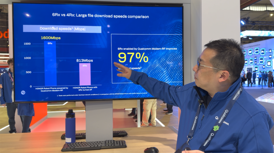 同理,现场演示的大量连接技术,都具备在正常网络环境下,对网络体验进一步优化的能力。例如Turbo DSDA可以让用户在畅享高速网络、下载大型文件时,仍能顺畅收发邮件与进行在线会议,借助更多载波支持的双数据流,实现更高吞吐量,从而提升应用性能与整体用户体验。AI对连接能力的增强,可让用户体验高性能、动态、高能效且可靠的5G和Wi-Fi连接,全面提升网络游戏、视频通话和流媒体等应用的体验。高通的5G调制解调器及射频系统也在不断通过迭代升级,实现在不同频谱条件下的连接峰值速率提升,并通过多项技术进一步提升连接稳定性。