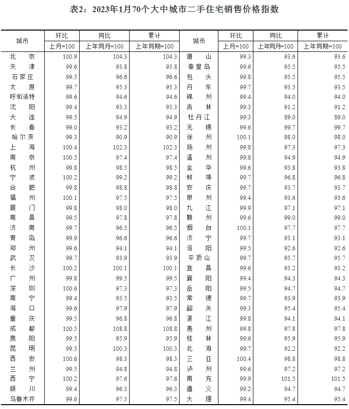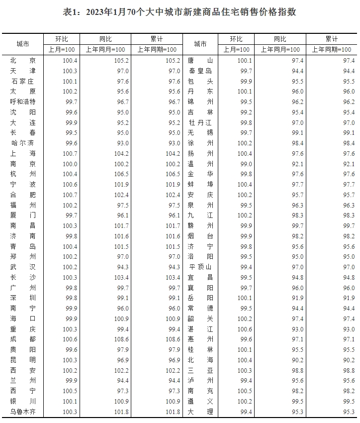 ——国家统计局城市司首席统计师绳国庆解读2023年1月份商品住宅销售价格变动情况统计数据
