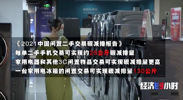 《2021中国闲置二手交易碳减排报告》的数据显示,每单二手手机交易至少可以实现约25公斤的碳减排量。家用电器和其他3C闲置物品的交易,可实现的碳减排量还要更高,一台家用电冰箱的闲置交易可实现的碳减排量高达130公斤。