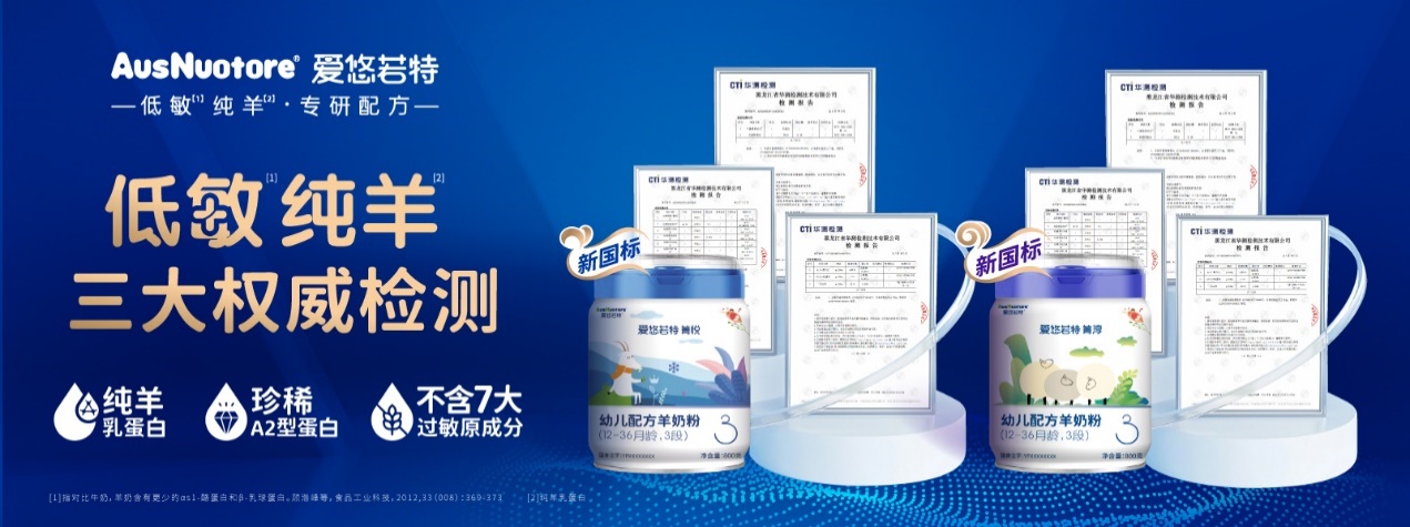 爱悠若特精研配方,经过权威机构三大“低敏检测”:1)两款产品均为100%纯羊乳,不含一滴牛乳成分,过敏原αs1-酪蛋白减少85%,减低宝宝过敏几率;2)只含有天然珍稀A2蛋白,不含易过敏的A1型β酪蛋白,更加亲和宝宝肠道;3)不含婴幼儿常见的7大过敏成分。