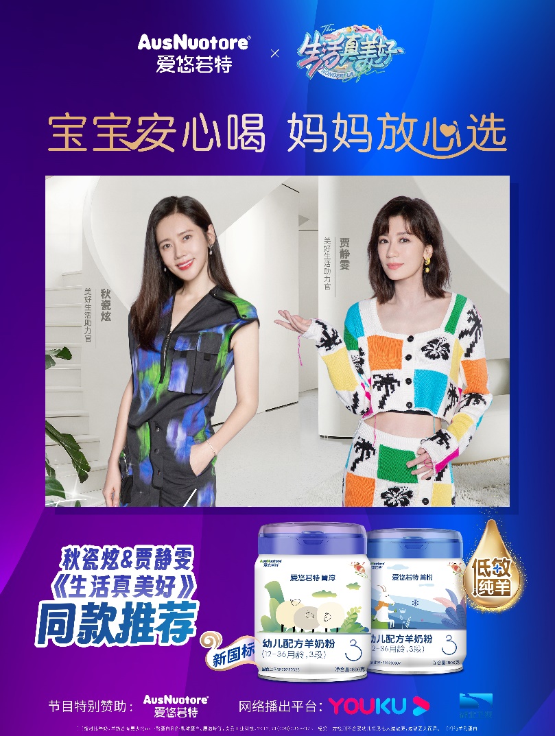 近期,爱悠若特新国标官宣,特别赞助国民综艺节目《生活真美好》,与浪姐4“超级赢家”贾静雯&秋瓷炫携手开启中国宝宝的低敏美好生活!