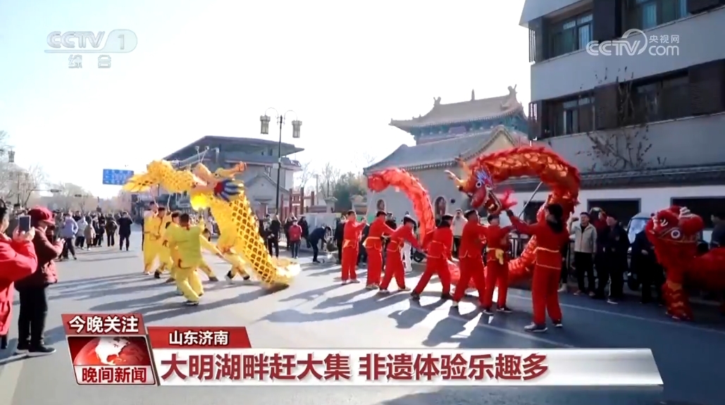春节期间,在山东济南大明湖畔,非遗文创、老字号产品精彩亮相,舞龙舞狮、高跷表演、非遗变脸、锣鼓秧歌、鱼灯舞等民俗主题演出轮番登场,让市民游客沉浸式体验国潮魅力。